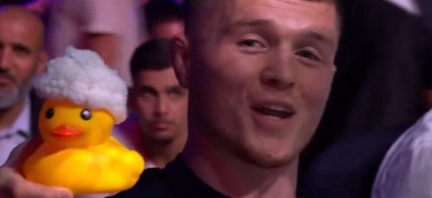 Недавно Пол Хьюз присутствовал на дебютном турнире PFL в Бельгии у ринга. Его показали в трансляции, и он, подражая Тому Аспиналлу, показал игрушечную утку, чтобы подразнить Усмана Нурмагомедова.